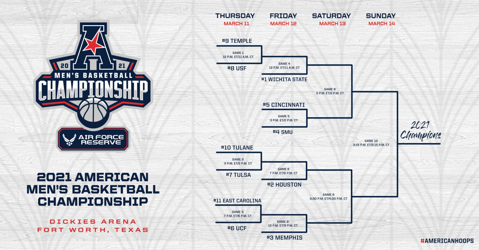 The top seed, of course, is Wichita State, led by interim-turned-full-time head coach Isaac Brown, who has done a masterful job with the Shockers since taking over Gregg Marshall’s job in November. While Wichita State claimed the regular-season AAC title, the job isn’t done yet for a March Madness berth. The Shockers are still uncomfortably close to the cutline entering the final week of the season, and a quarterfinals loss to South Florida or Temple could keep Brown’s squad out of the Big Dance.