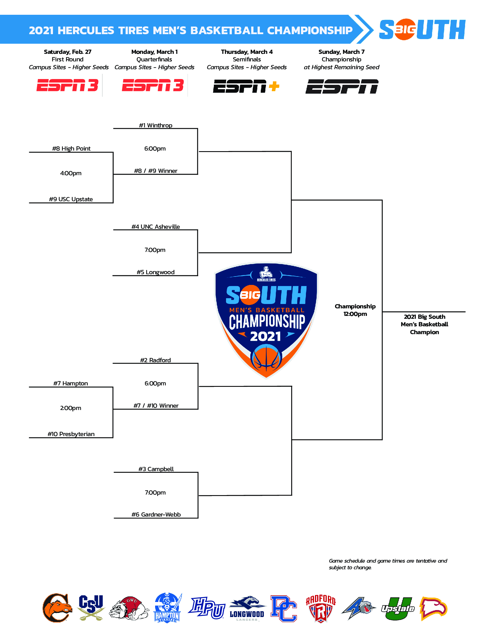 DURHAM, NC - NOVEMBER 29: Winthrop Eagles head coach Pat Kelsey during the 1st half of the Duke Blue Devils game versus the Winthrop Eagles on November 29th, 2019 at Cameron Indoor Stadium in Durham, NC.(Photo by Jaylynn Nash/Icon Sportswire) The field has been set for the Big South Conference Tournament, and the action starts this Saturday with a pair of opening-round games on ESPN3. While the result of the event may be a foregone conclusion, an upset to the league’s top team would send Bubble Watchers to the edges of their seats.