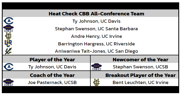 Justin Hohn-Mack (12.6 ppg) and Andre Henry (10.3 ppg) return to lead the scoring charge for Irvine. Last season, Hohn-Mack led the team in scoring, but Henry’s shooting efficiency (51.1 2P%, 42.9 3P%) —coupled with his production on the other end as the league’s Defensive Player of the Year — should make him an early contender for Big West Player of the Year.
