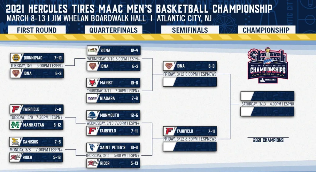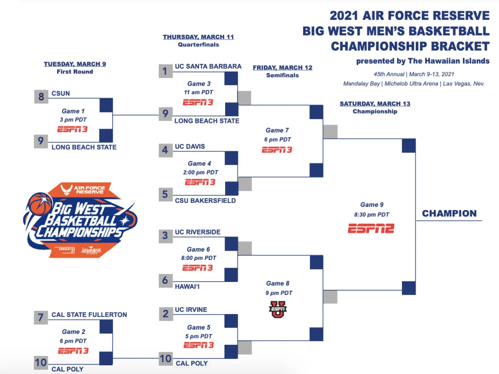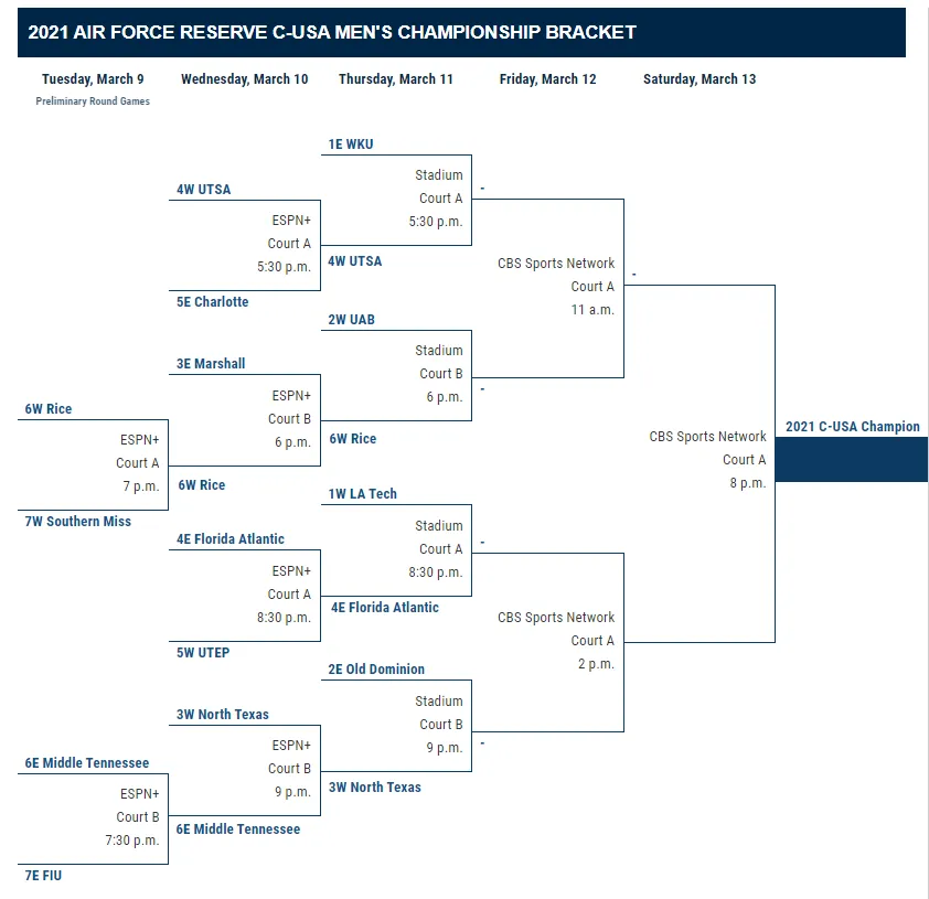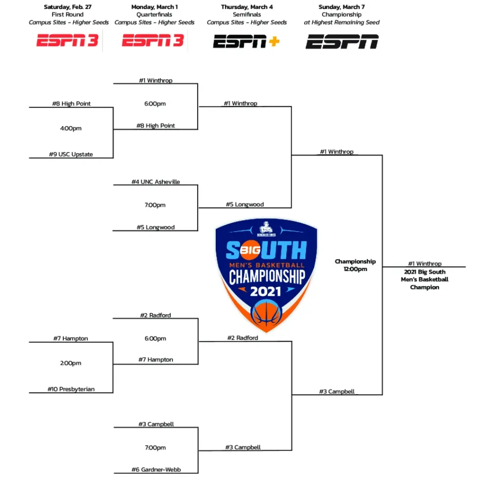- CHAMPIONSHIP: Tuesday, March 13, 6:00 p.m. ET on ESPNU.