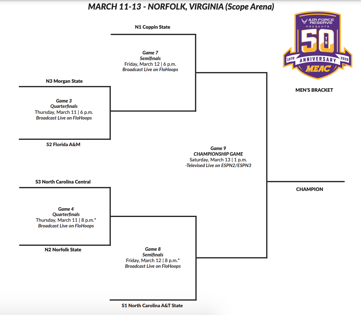 - CHAMPIONSHIP: Sunday, March 7, 2:00 p.m. ET (ESPN)