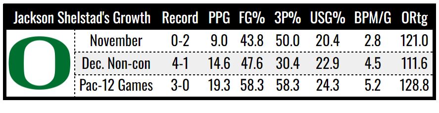 Shelstad certainly has been that and more for the Ducks. Given that this is a down year for the Pac-12, Oregon has the opportunity to start stacking wins. It has as good of a chance as any to finish second behind Arizona, something that will only happen if Shelstad maintains this production.