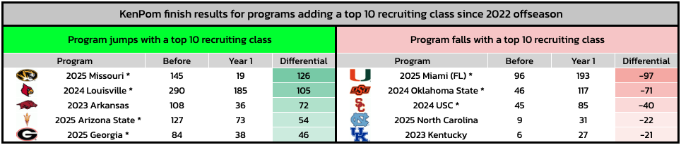 The takeaway: A single top-rated recruit likely won’t propel dramatic improvement by himself. But if they can be a supplemental piece to players already set in star positions, big leaps can come.