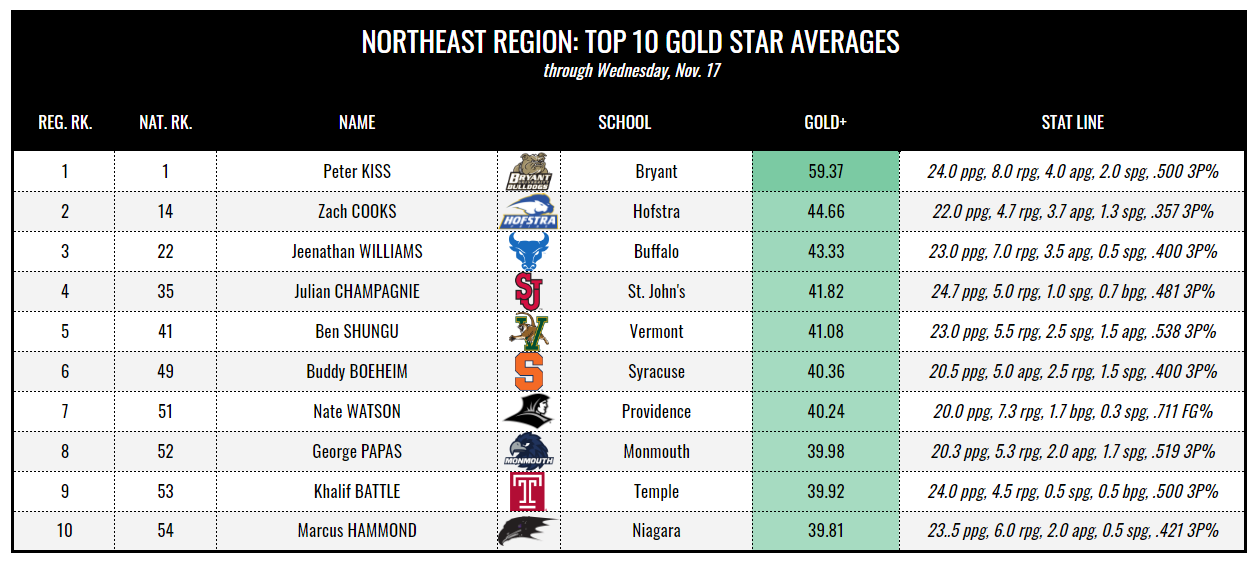 What better player to kick off our Gold Star college basketball player rankings breakdown than Hofstra’s iron man, Zach Cooks? The transfer from NJIT has played all 125 minutes in the Pride’s first three games, including taking a ranked Houston team into overtime on opening night. The Pride may only be 1-2, but that win was over a solid Duquesne team. The losses, meanwhile, came against two likely NCAA Tournament squads in Houston and Iona. Cooks is a major reason why with 22 points and nearly four assists per game.