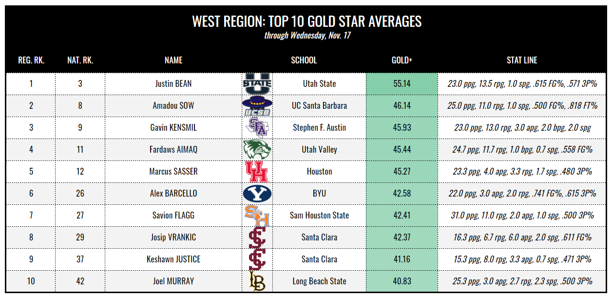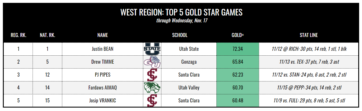 Bryant’s Peter Kiss and Utah State’s Justin Bean lead the initial college basketball player rankings of the season, per The DPI Gradebook.