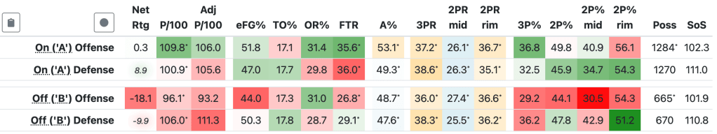 Similar efficiency profiles and statistics found via Bart Torvik.