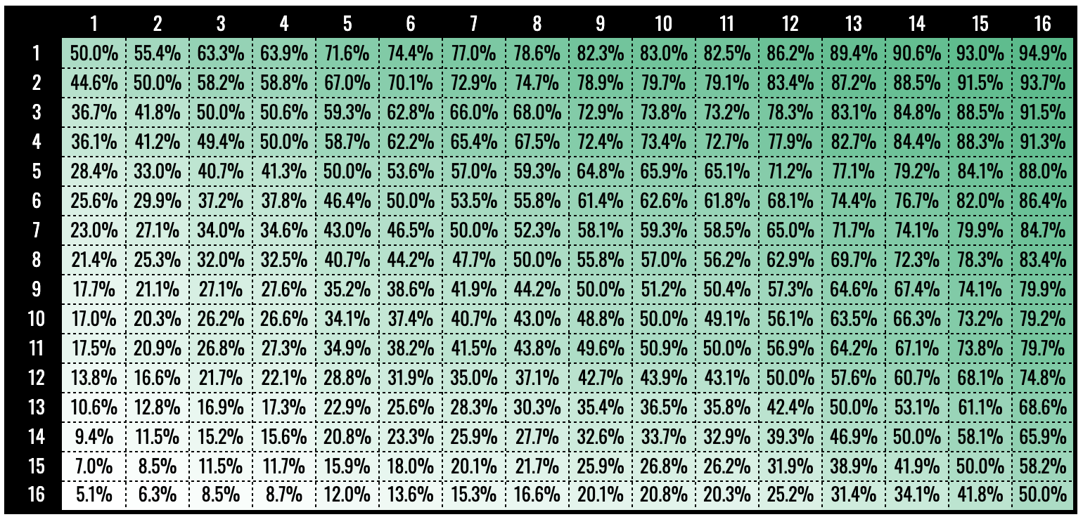 Tournament Index’s Seed vs. Seed Win Probability Chart